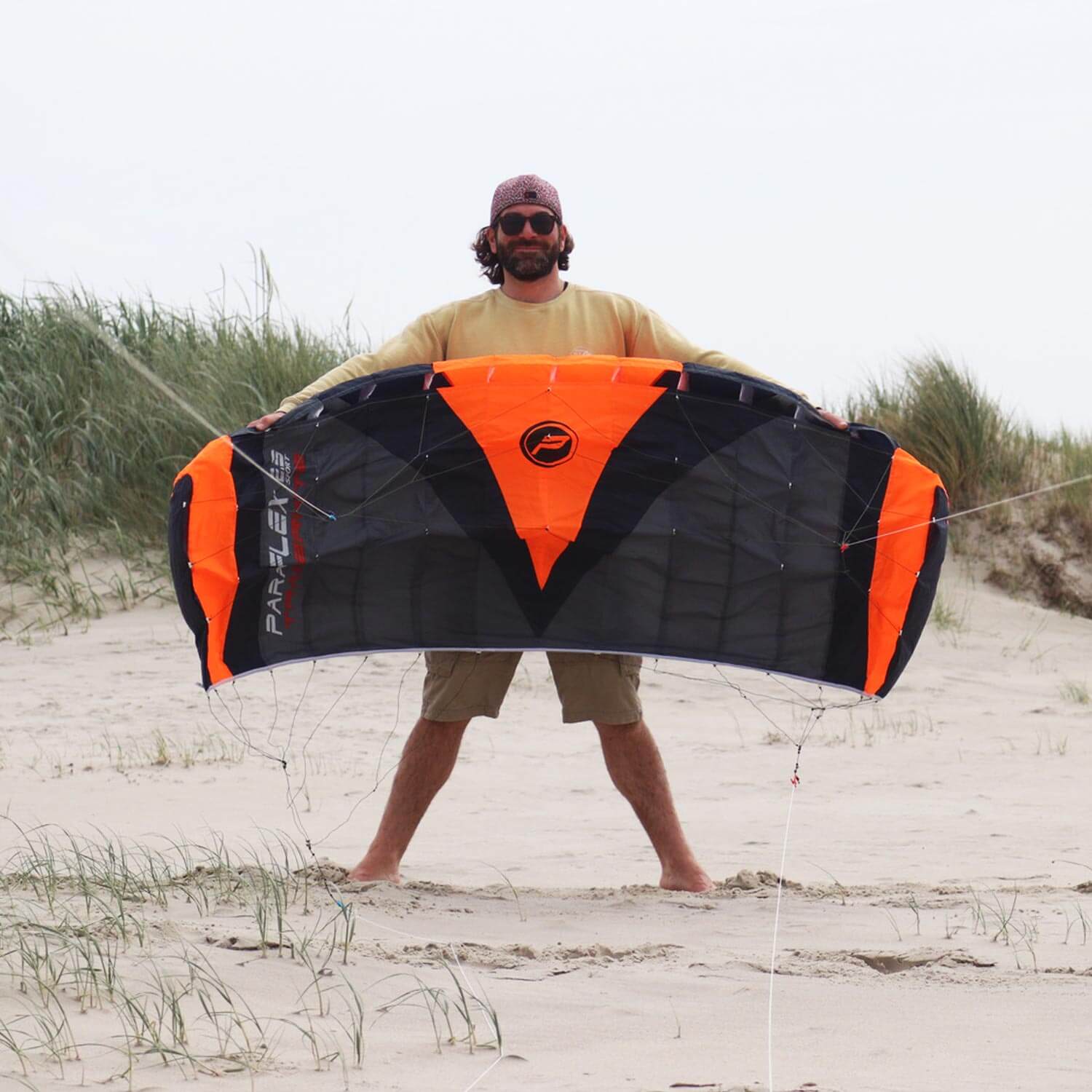 Der Paraflex Trainer 2.3 in neonorange sorgt für Extravaganz am Himmel. Die Lenkmatte ist der perfekte Einsteigerkite fürs Kitesurfen an Land und mithilfe der Trainerbar sehr bequem zu fliegen. Die Paraflex Trainer 2.3 ist die kleinere Actionkite-Lenkmatte der Paraflex Trainer Reihe, hat dadurch weniger Zugkraft als die größere Paraflex Trainer 3.1 Variante, ist aber aufgrund ihrer Größe agiler und bringt dem Flugpiloten viel Spaß. Ideal ist für ein ausgiebiges Flugerlebnis eine Windstärke von 2 - 6 Bft. Wir empfehlen die Trainer Lenkmatte Piloten ab 10 Jahren. Die Paraflex Trainer 2.3 Neonorange kommt an insgesamt vier Leinen, zwei äußere Steuerleinen und zwei innenlaufende Bremsleinen, die am Ende an der mitgelieferten Trainerbar zu einer gemeinsamen Mittelleine zusammenlaufen. Daher sprechen wir in diesem Fall auch von einem Dreileiner Kite. Der 3-Leiner lässt sich wie ein Zweileiner fliegen, aber mit Bremsfunktion. So ermöglichen die zusätzlichen Bremsleinen eine Reihe weiterer Funktionen, wie z.B. einfache Rückwärtsstarts, abruptes Stoppen des Kites und sicheres Landen. Hier haben wir zudem ein einfaches Sicherheitssystem mit einem Kite Killer, der vor dem Fliegen am Handgelenk befestigt wird. Solltest Du Dich in einer Gefahrensituation befinden oder die Lenkstange loslassen müssen, bleibt der Trainingskite an Deinem Handgelenk und gleitet langsam zu Boden. Das ist besonders wichtig, wenn Du Deiner Trainermatte mit einem Mountainboard oder Snowbaord fährst. Da die Trainermatte ready to fly zu Dir nach Hause geliefert wird, musst Du nichts weiter aufbauen. Du kannst sie einfach auspacken, die Leinen abwickeln und los geht’s! Zieh die Lenkmatte in die Lüfte und der Spaß beginnt. Solltest Du allein mit dem Lenkdrachen unterwegs sein, kannst Du ihn einfach mit etwas Sand, Steinen oder Ähnlichem beschweren, um den Drachen anschließend allein zu starten. Einfach wie gewohnt die Leinen komplett abwickeln und mit einem kleinen Ruck an der Trainerbar ziehen, schon kannst Du losfliegen. Nach dem Sport ist vor dem Sport! Du kannst die Trainermatte direkt wieder in der praktischen Tasche verstauen und sie platzsparend aufbewahren. Achte dabei aber immer darauf, dass Du die vier Flugleinen über Acht auf die Hörnchen Deiner Trainerbar wickelst So verhinderst Du beim nächsten Abwickeln der Leinen, dass sich alles verdreht. Der Trainerkite ist ein idealer Begleiter auf Reisen und für Unterwegs. Dank des sportlichen Designs und einer Zugkraft bis zu 150 kp ist die Paraflex nicht nur ein flinkes Fluggerät, sondern auch ein echter Hingucker am Himmel. Praktisch ist, dass der Dreileiner ohne Gestänge auskommt. Somit ist er sehr robust und bequem zu fliegen. Sollte er Dir bei mehr Wind doch zu zugkräftig sein, kannst Du ihn auch an einem Trapez fliegen, hierfür benötigst Du eine Harness Line, um Deine Trainerbar mit dem Trapez zu verbinden. Alternativ kannst Du die Trainermatte auch mit Vierleiner-Handgriffen fliegen. Dadurch bist du noch etwas agiler unterwegs. Mit der Lenkstange kannst Du Dich hingegen mehr in die Matte hineinlegen. Entscheide selbst, wie Du Deine Matte am liebsten fliegst. Mittels eines Buchtknotens am Ende der Flugleinen kannst Du Deine Trainerbar ganz einfach durch die Handgriffe ersetzen.
