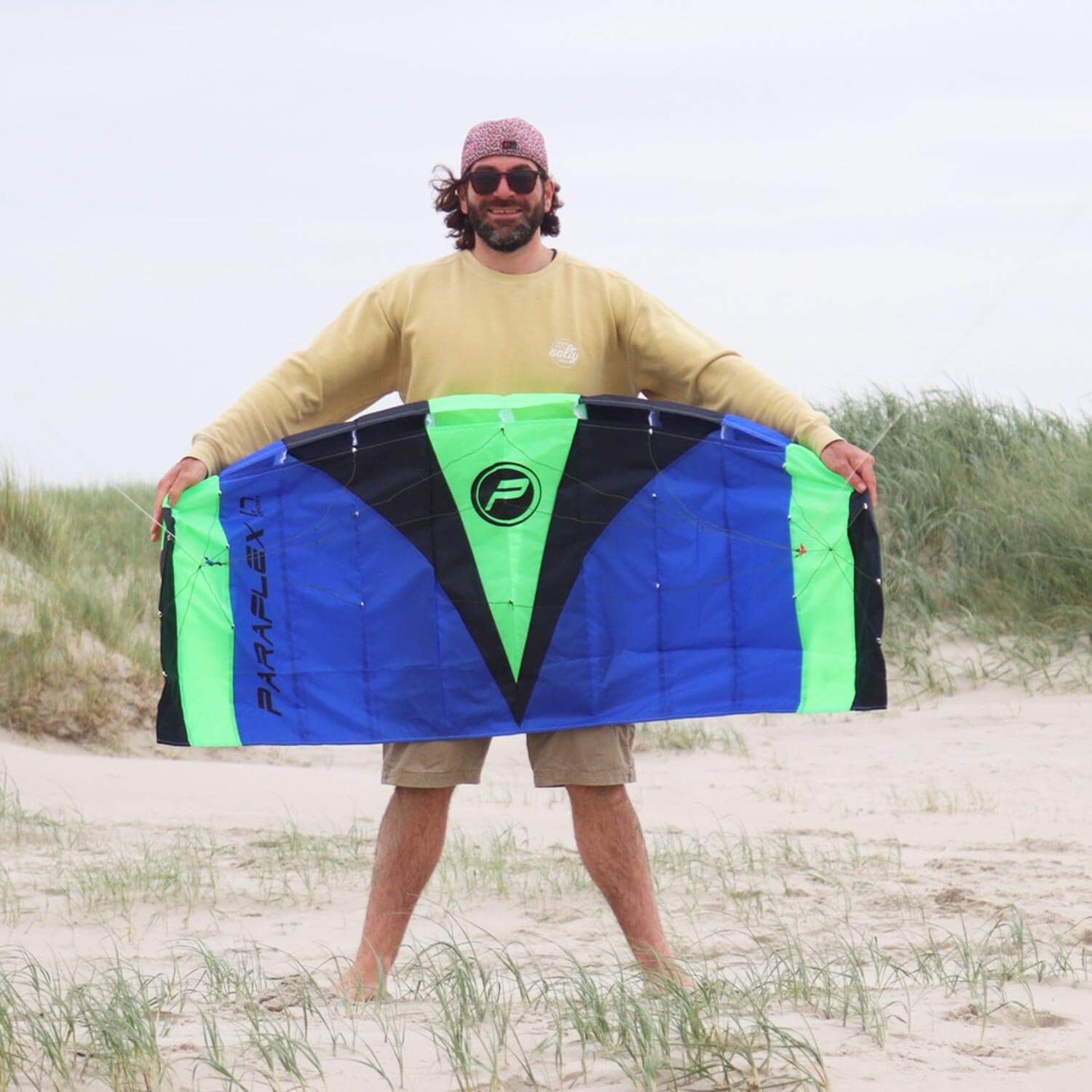 Klein, aber oho! Aufgepasst - unsere Paraflex Sport 1.7 ist die kleine Lenkmatte aus der Paraflex Sport-Serie, aber dennoch nicht zu unterschätzen. Bereits bei moderaten Windverhältnissen kann der Zweileiner optimal allein oder zu zweit gestartet werden und gewinnt an Geschwindigkeit. Ideal sind sind die Windstärken von 2 bis 6 Bft. Solltest Du allein unterwegs sein, beschwere Deine Lenkmatte mit ein wenig Sand oder kleinen Steinen, lege die beiden Flugleinen komplett auf dem Boden aus und nimm die Lenkstange in die Hand. Befestige vorab die mitgelieferte Safety Leash an Deinem Handgelenk, damit die Lenkmatte stets bei Dir ist, auch wenn Du die Lenkstange einmal loslässt. Der Kite wird dann einfach zu Boden sinken und nicht wegfliegen.