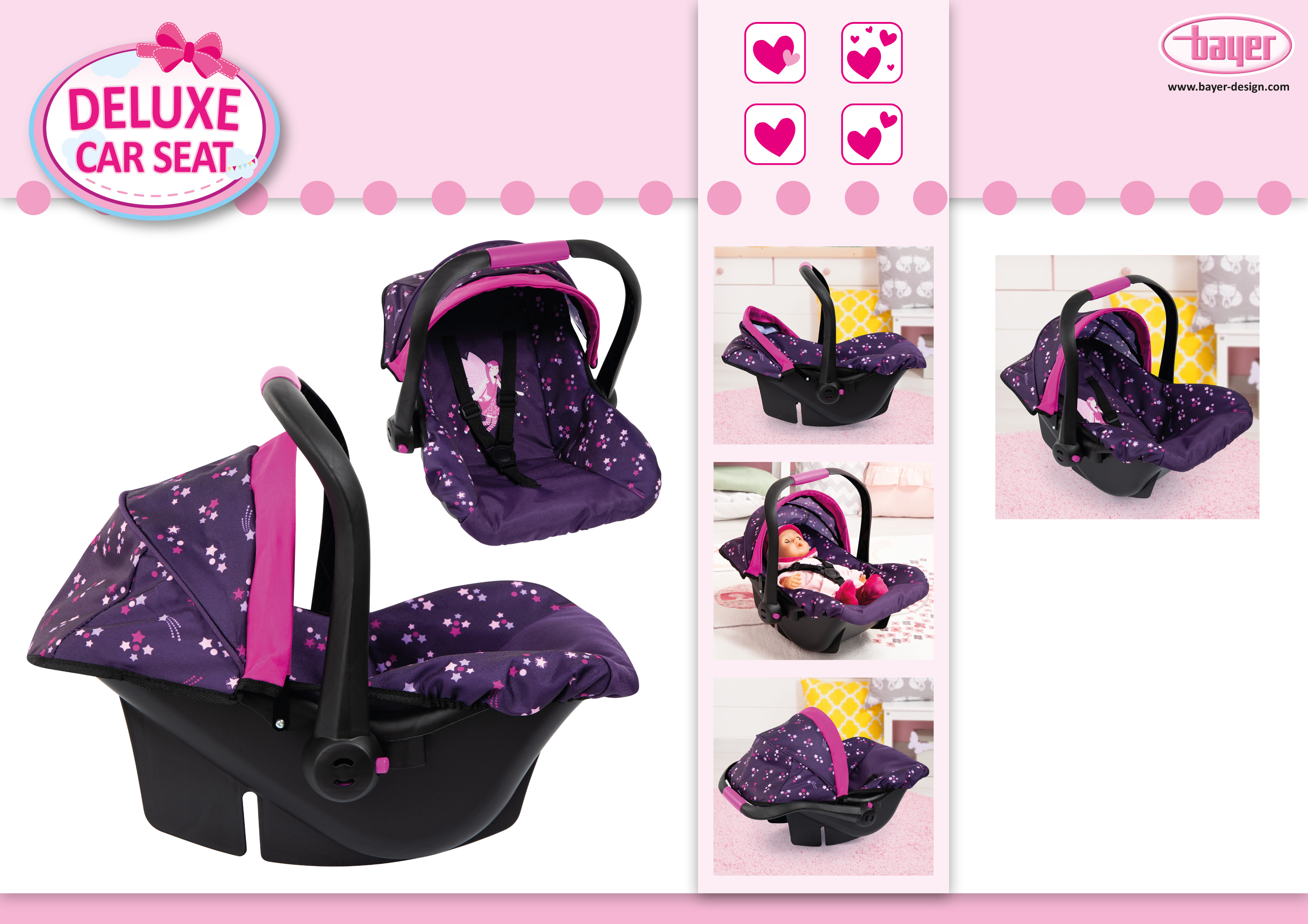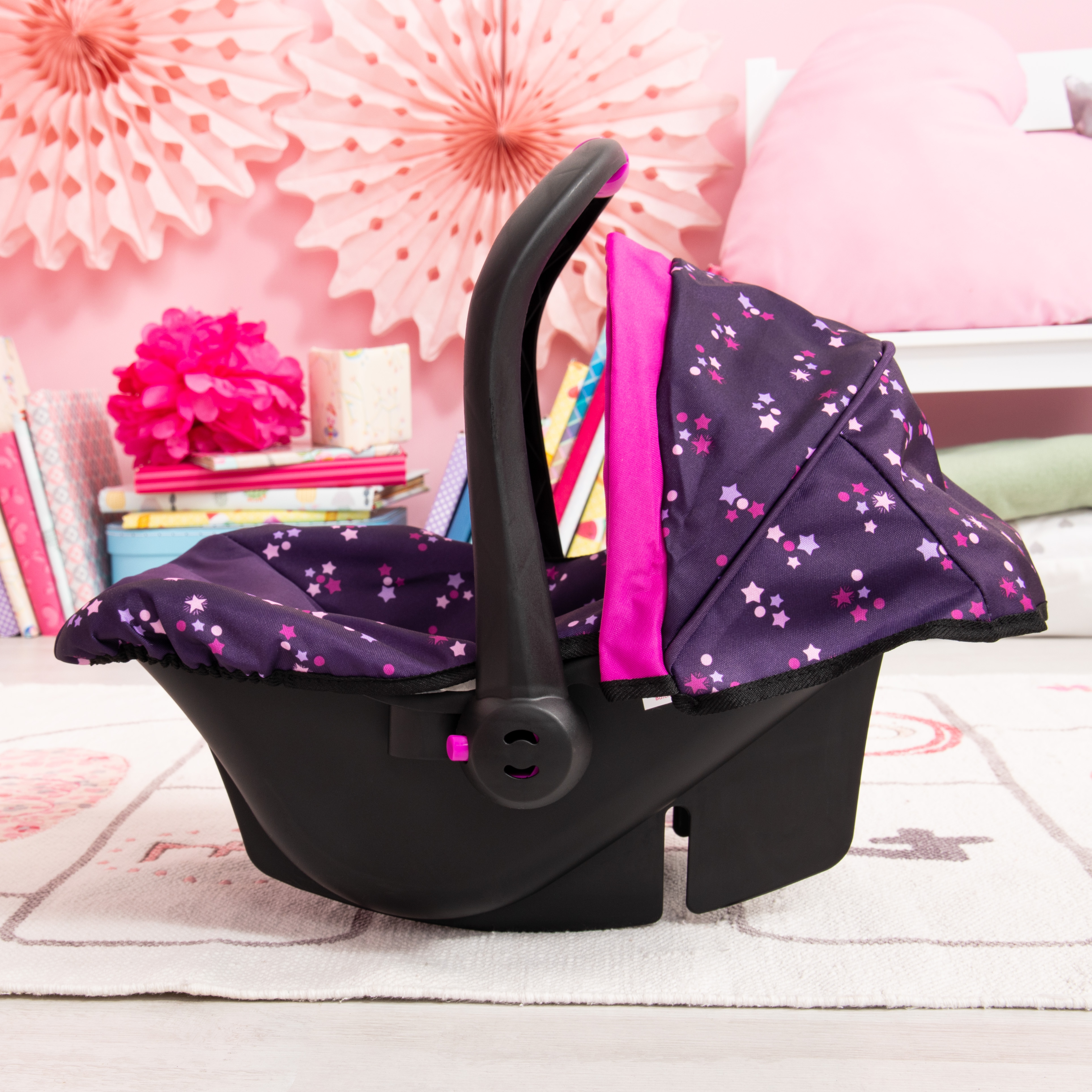 Dieser moderne Puppenautositz hat eine trendige Farbe und ist für Puppen bis 46 cm Größe geeignet. Der Autositz gewährleistet einen stabilen Halt und fällt nicht um, wenn die Puppen hineingelegt wird. Durch den wunderschönen Stoffüberzug inkl. Polsterung und dem farblich passenden Sonnendach sitzt die Puppe oder das Plüschtier bequem und ist vor Sonnenstrahlen und Wind im Gesicht geschützt. Durch den integrierten Gurt, kann der kleine Liebling gesichert werden, so dass schönen Träumen nichts im Wege steht. Der ergonomische Griff bietet darüber hinaus hohen Tragekomfort, so dass die Puppe oder das Plüschtier leicht überall mit hingenommen werden kann. Zusätzlich kann der moderne Autositz auf den Neo Vario Kombi Puppenwagen aufgesteckt werden. Der Puppenautositz eignet sich für Kinder ab 3 bis 6 oder 7 Jahren.