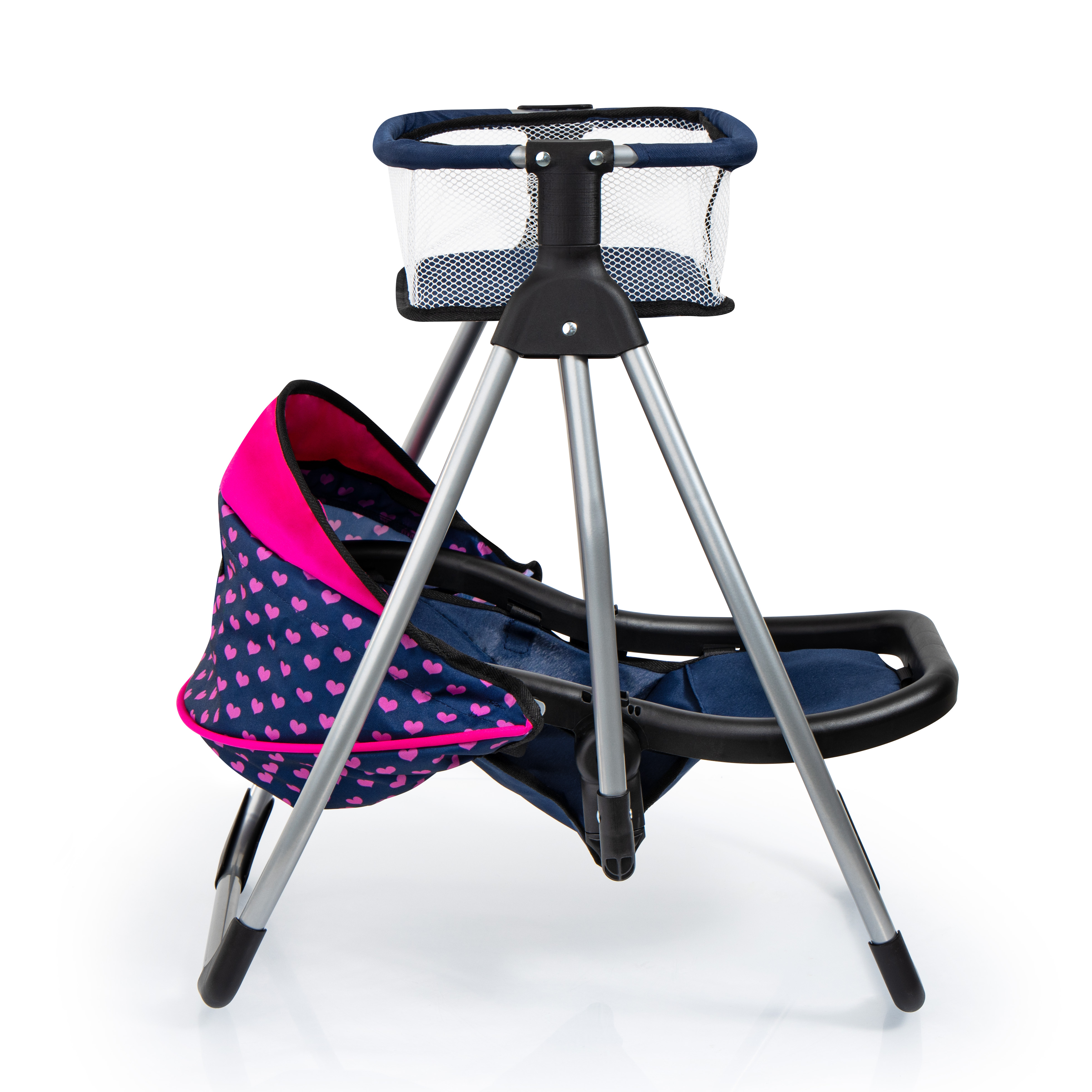 Dieser moderne Puppenhochstuhl bietet vielfältige Spielmöglichkeiten. Er hat ein frisches Design und ist für Puppen bis 46 cm geeignet. Er kann sowohl in aufrechter Position zum Füttern der Puppe genutzt werden als auch in liegende Position umgestellt werden. Durch das enthaltene Essenstablett, kann die Puppe zudem bequem gefüttert werden. Der Hochstuhlsitz kann herausgenommen werden und im Handumdrehen kann aus ihm eine Schaukel gemacht werden, so dass die Lieblingspuppe in den Schlaf gewogen werden kann.