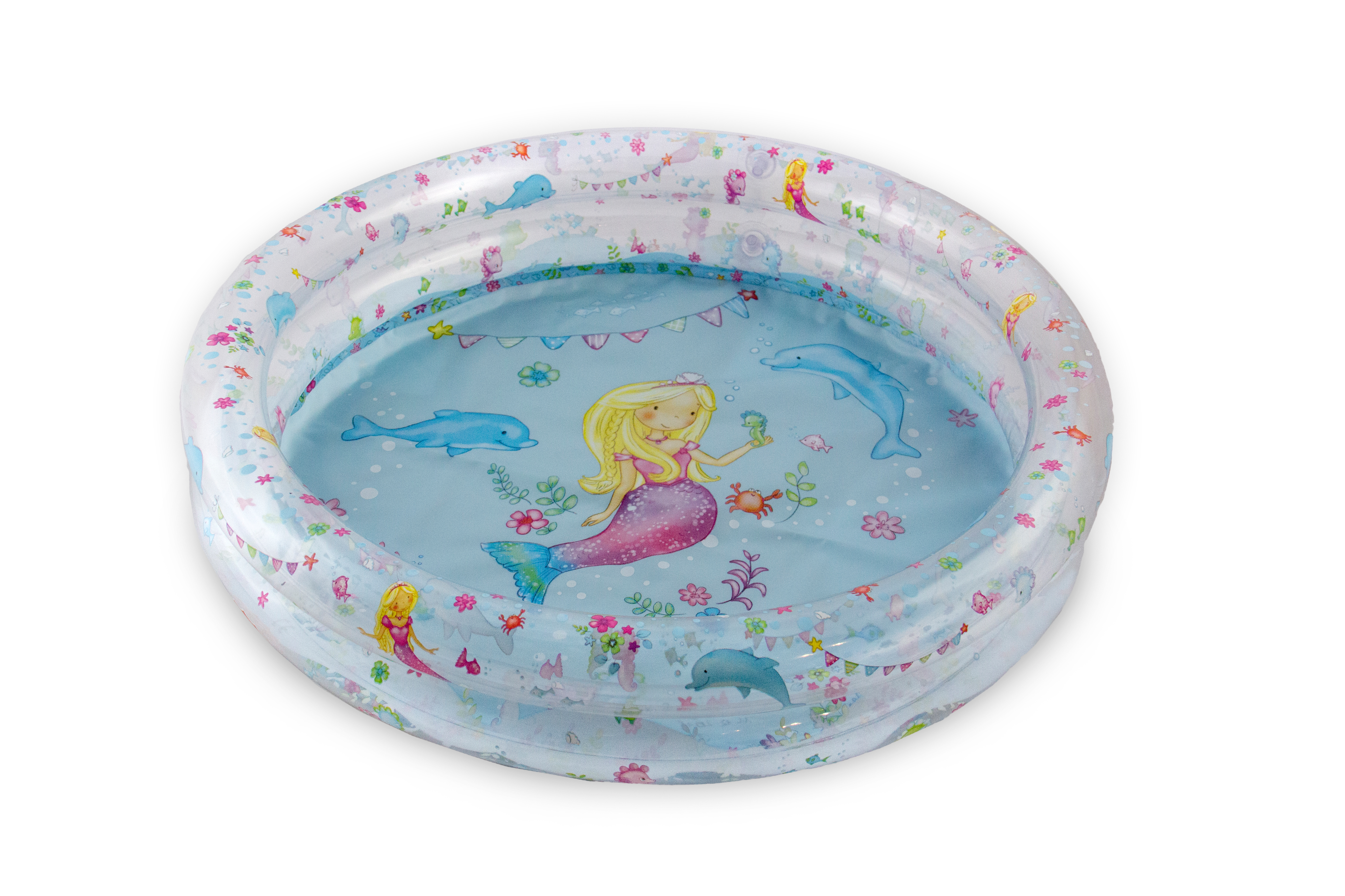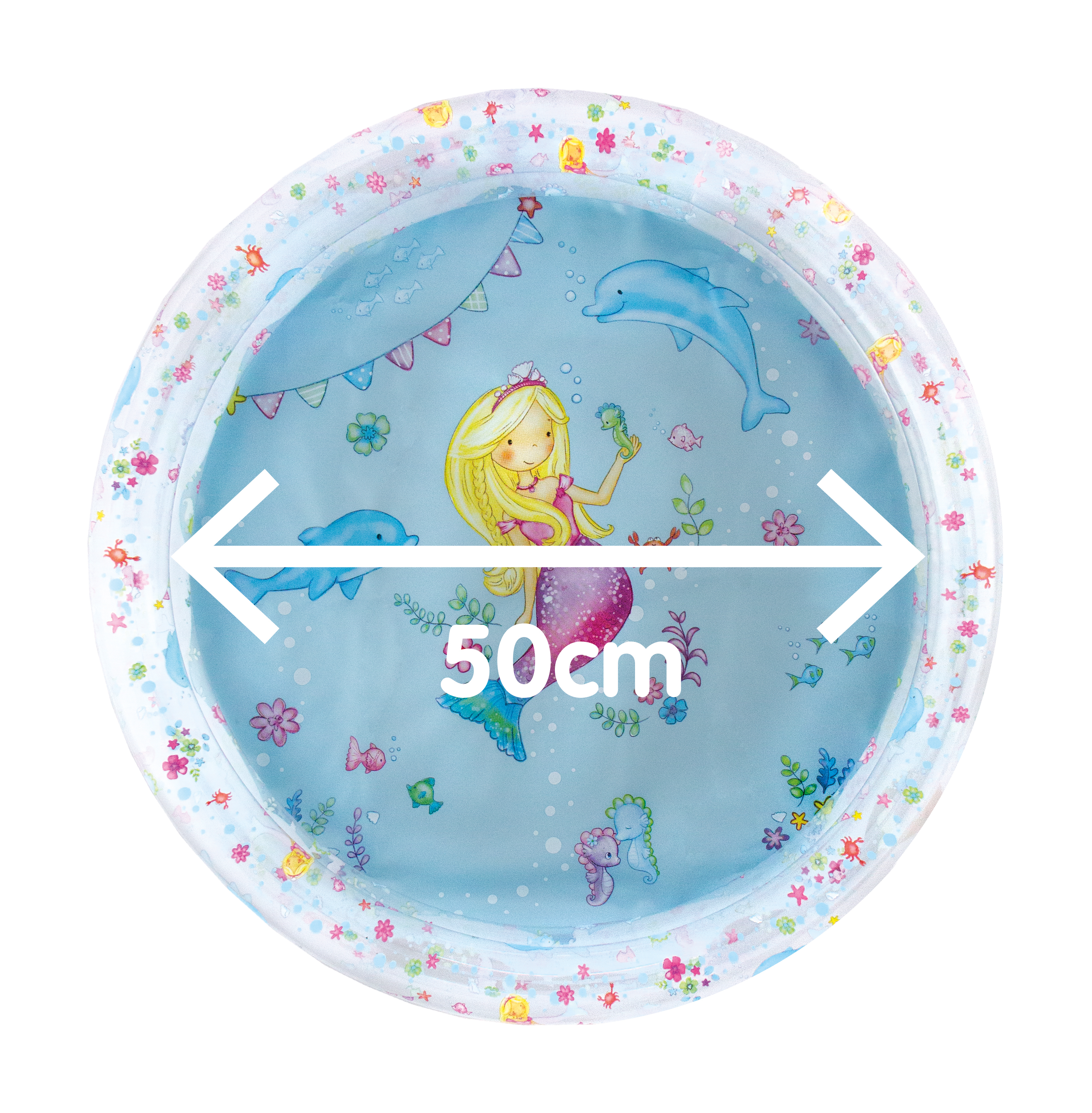 Mit dem Puppen-Planschbecken der Meerjungfrau "Ava" von Heless ist maximaler Planschspaß garantiert. Egal ob die Puppe, der liebste Teddy oder das Kind selbst darin badet - umgeben von Meerjungfrau "Ava", kleinen Fischen und Seepferdchen bereitet die faszinierende Unterwasserwelt allen Wasserratten eine riesige Freude. Eine tolle Abkühlung für warme Sommertage! Dank einer sorgfältigen Verarbeitung und der Verwendung von robustem Material bleibt der Planschspaß lange erhalten. Maße Planschbecken: Durchmesser 50,0 cm, Höhe: 11,5 cm. Zwei Luftkammern mit jeweils einem Ventil zum Aufblasen. Das beste Ergebnis wird erzielt, wenn das Planschbecken mit einer Luftpumpe aufgeblasen wird. ACHTUNG! Kinder können bereits in kleinen Wassermengen ertrinken. Das Becken ist zu leeren, wenn es nicht in Gebrauch ist. Benutzung unter unmittelbarer Aufsicht von Erwachsenen!