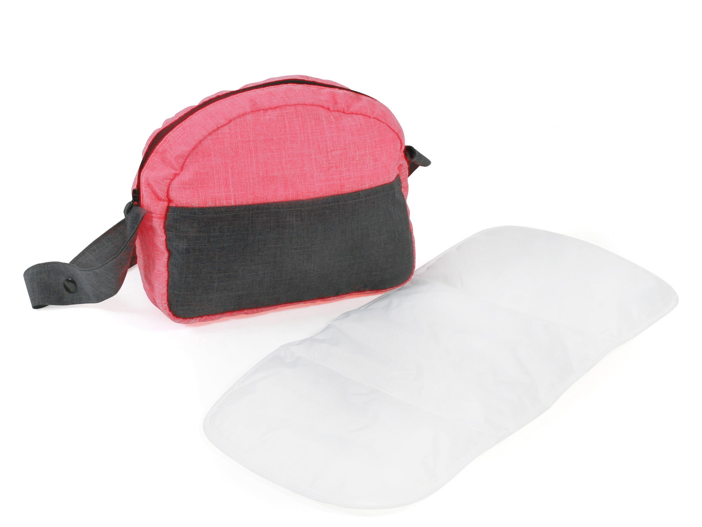 Niedliche Wickeltasche für Puppen komplett mit großer, abwaschbarer Wickelunterlage. Die Tasche kann mit Druckknöpfen an der Schiebestange des Puppenwagens befestigt werden. Hochwertiges Puppen-Zubehör für Ihre Puppe. Mit praktischer Umhängefunktion. Artikelmaße: ca. 27 x 9 x 22 cm; Gewicht: 0,2 kg