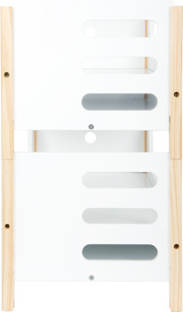 Ein Etagenbett der Extraklasse! Dieses Hochbett überzeugt in Funktion und Design und fügt sich dank skandinavisch-geradliniger Form und zurückhaltender Gestaltung perfekt ins Kinderzimmer ein. Moderne, genderneutrale Wendebettwäsche und die übergroßen Bettdecken lassen Puppen und Plüschtiere bis 46 cm Größe besonders bequem in den zwei einzeln oder stabil übereinander gestapelten Bettchen schlafen. Beim Zusammensetzen der Einzelbetten ergibt sich am Fußende die Hochbettleiter. Die Bettkastenfächer mit Klappe eignen sich hervorragend, um Puppenzubehör zu verstauen. Besonders hochwertig verarbeitet, mit stabiler Konstruktion, abgerundeten Kanten und sichtbaren Vollholzelementen bietet das Puppenhochbett eine stilvolle Spielergänzung fürs Kinderzimmer. Vormontierte Teile erleichtern den Aufbau.