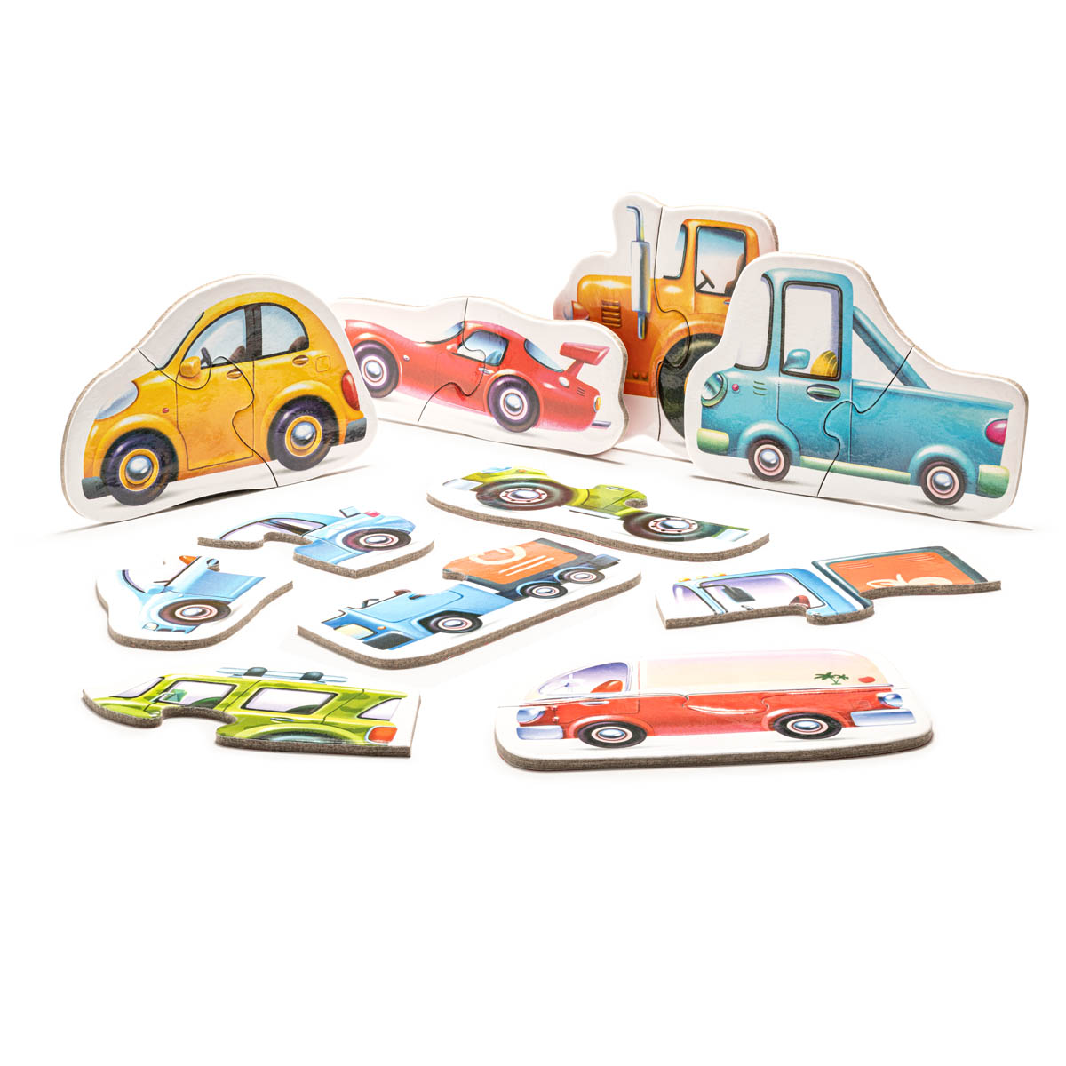 Das farbenfrohe Puzzle besteht aus 8 verschiedenen Fahrzeug-Motiven mit jeweils 2 Elementen. Es fördert die Vorstellungskraft, Logik und Feinmotorik deines Kindes.