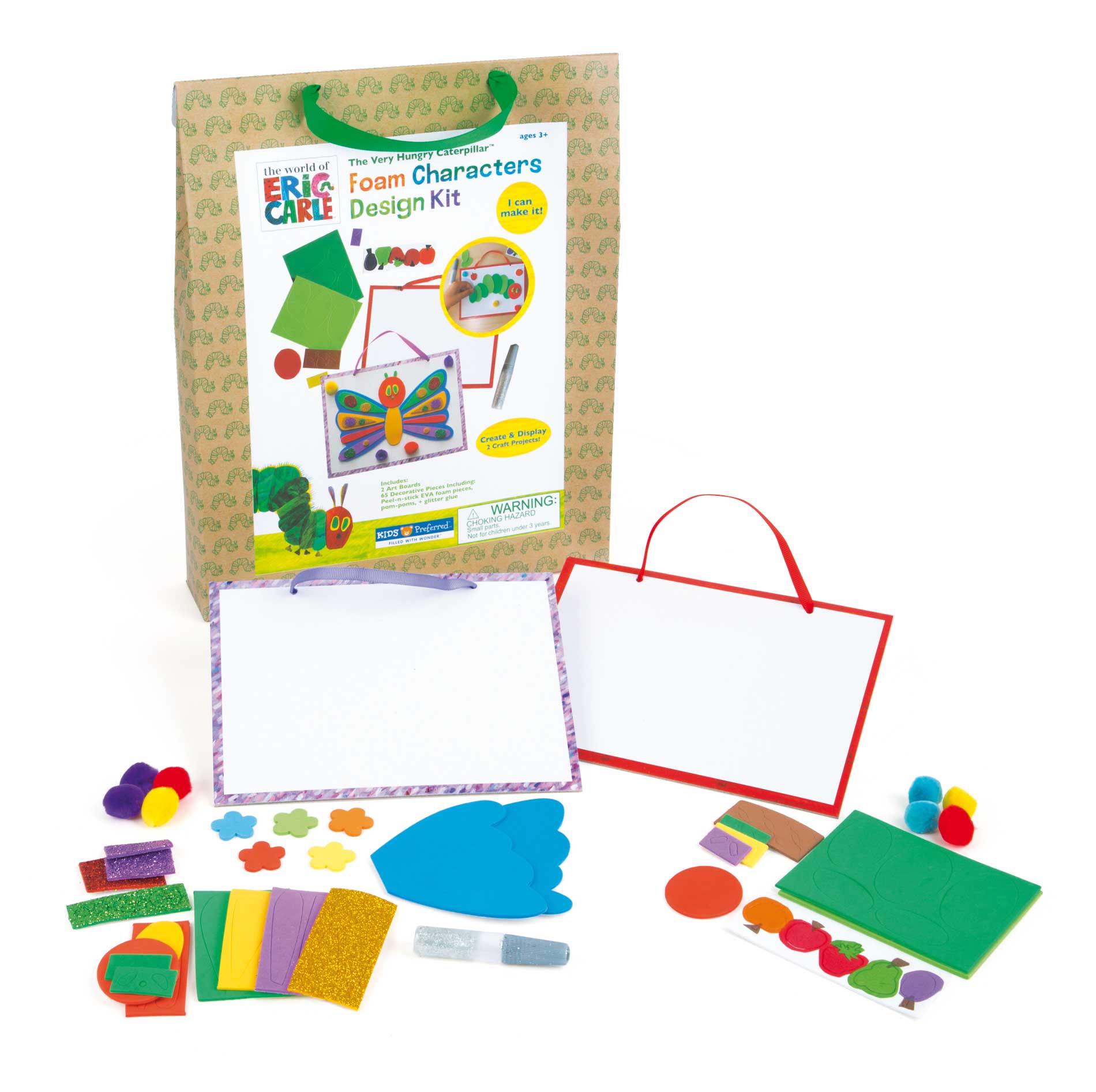 Das Raupe Nimmersatt Bastelset enthält Karton und Zubehör für zwei wunderschöne Motive.