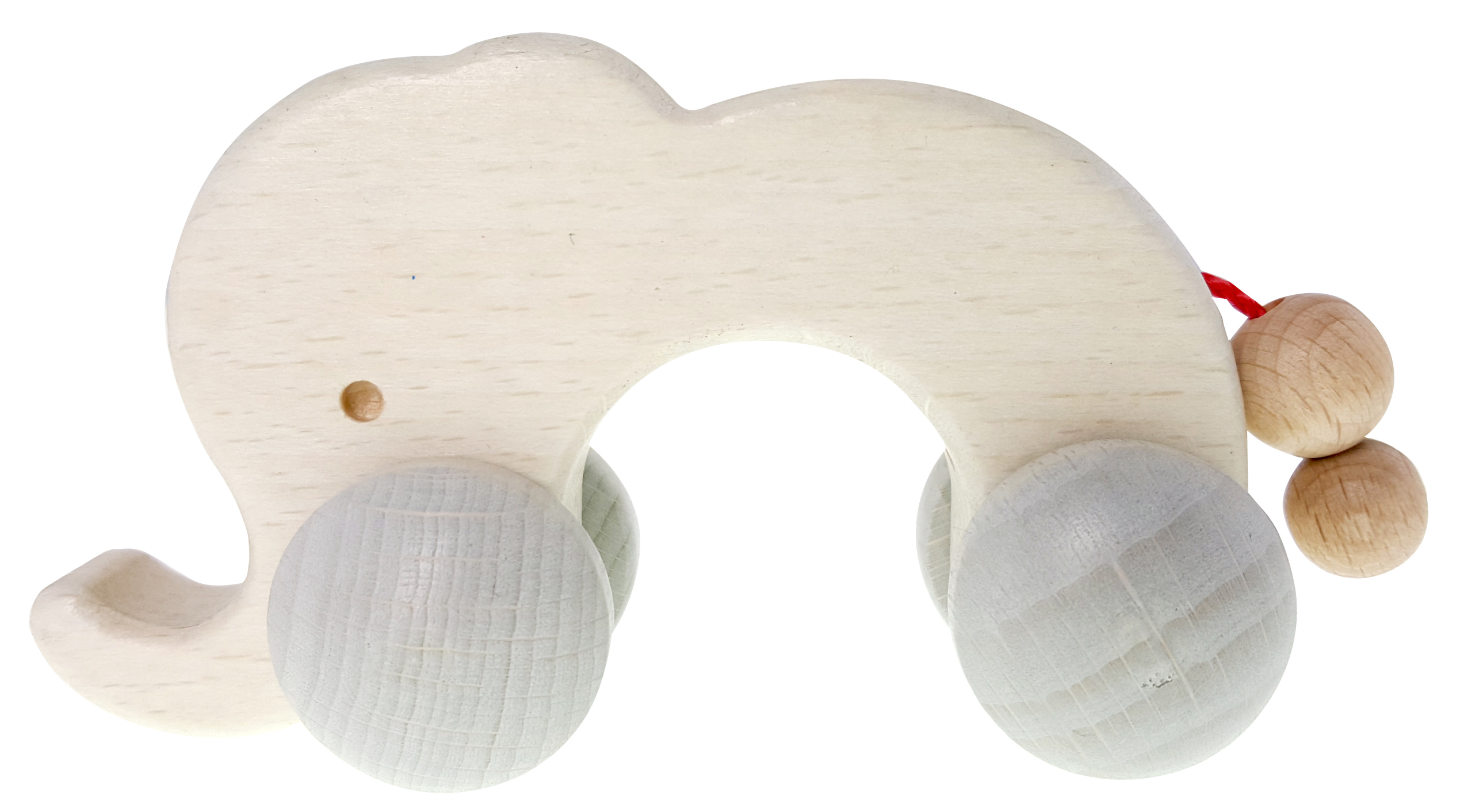 Das niedliche Schiebetier aus Holz, mit vier leicht beweglichen Rädern fördert die Motorik und regt die Fantasie und Kreativität ihres Kindes an.