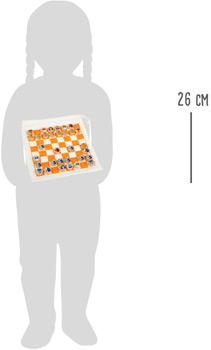 Strategie im Beutel! Gegen eine Partie Schach auf Reisen ist nichts einzuwenden. Der Beutel ist mit der passenden Spielfläche bedruckt und dient als Aufbewahrung für die Spielsteine aus FSC® 100%-zertifiziertem Holz. Das Tolle: Das Spielfeld kann auch für ein Dame-Spiel verwendet werden. Wer macht den ersten Zug?