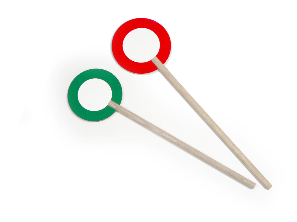 • Die Kelle ist aus Holz, mit einer grünen und einer roten Seite