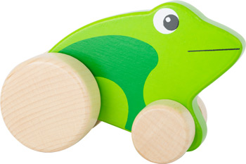Schaut her, ein Frosch auf Rädern? Genau - dieser farbenfrohe Frosch aus FSC® 100%-zertifiziertem Holz bewegt sich beim Anschieben durch die beiden Hinterräder auf und nieder. Das sieht nicht nur lustig aus, sondern motiviert zum Anschieben und fördert so die Motorik der Kleinen beim Krabbeln. Dieser Frosch ist ein richtiges Multitalent!