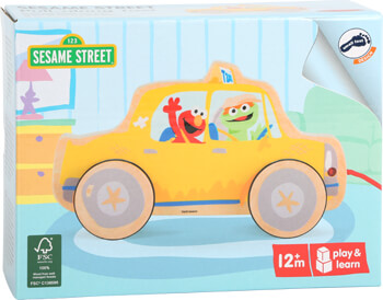 Komm, wir nehmen uns ein Taxi! Das niedliche SESAMSTRASSE Zieh-Taxi aus FSC® 100%-zertifiziertem Holz begleitet kleine Abenteurer auf ihrer Entdeckungsreise. Immer mit dabei sind Elmo und Taxifahrer Rumpel. Robustes Schichtholz, leichtgängige Räder und die niedlich lackierten Motive sorgen für aufregende Fahrten durch Haus und Garten. Für besonderen Spaß sorgt der "Plattfuß", der das Taxi "unrund" laufen lässt. Die lange Kordel lässt das Ziehtaxi bequem auf Schritt und Tritt hinterherfahren - ein toller Begleiter im SESAMSTRASSEN-Design, der in keinem Kinderzimmer fehlen darf und auch den Erwachsenen ein Schmunzeln entlockt!