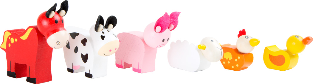 Die Farmtiere sind los! Mit dem stabilen Bauernhof aus Holz ist Spielspaß auch unterwegs garantiert. Alle 15 bunt lackierten Teile passen in die Scheune, die mit einem Gummiband geschlossen und mit den praktischen Kordeln wie ein Koffer getragen werden kann. Was beim Aufklappen zum Vorschein kommt, lädt zu vielfältigen Rollenspiel-Erfahrungen ein: Der Bauernhof enthält nicht nur den Bauern und die Bäuerin, sondern auch fünf niedliche, detailreich bemalte Tiere. Zäune, Bäume und ein Karottenbeet zum Ernten machen diesen Bauernhof aus Holz komplett. Ideal für kleine Spielflächen und auf Reisen - mit dieser Spielwelt aus Holz lässt sich im Handumdrehen Landluft schnuppern!