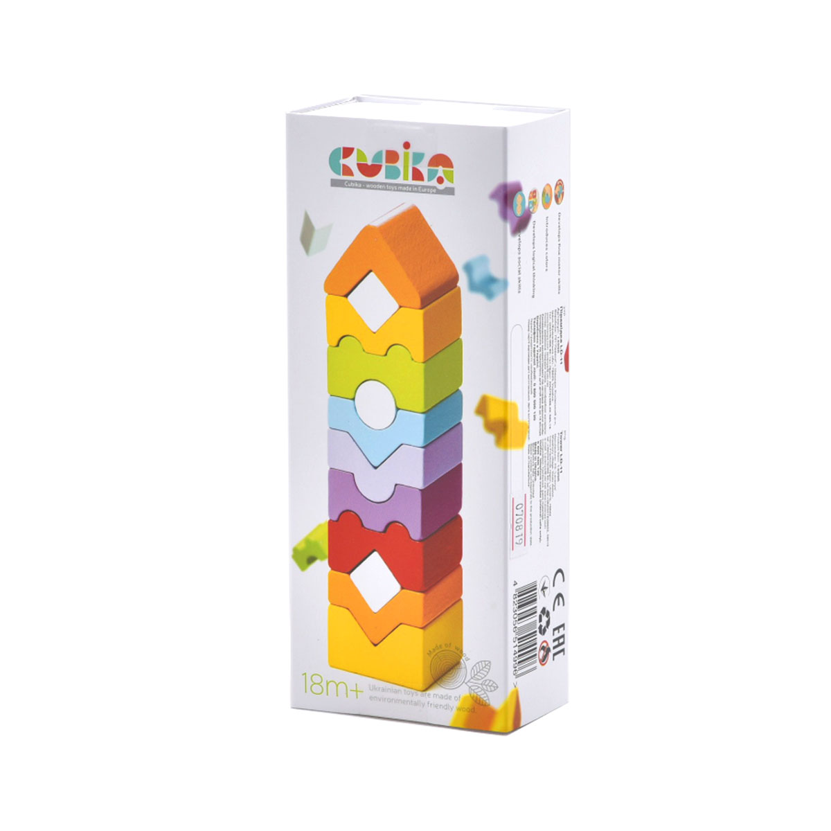 Dieser Stapelturm besteht aus 12 farbenfrohen Holzelementen, die jeweils in Form und Farbe einzigartig sind. Ideal für Kleinkinder, da die Details groß, aber nicht schwer und bequem für den Griff eines Kindes sind. Entwickelt Feinmotorik, logisches Denken, lehrt ein Kind Formen, Farben, Größen. Versuchen Sie, die richtige Balance zu finden, damit der Turm nicht umfällt.