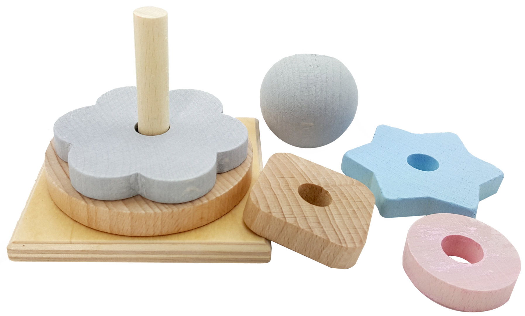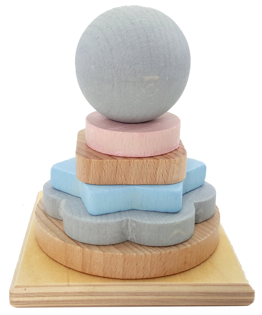 Der Stapelturm ist ein Klassiker unter den Spielzeugen. Eine perfektes Stapelspiel mit 5 Stapelringen und einer Holzkugel. Durch seine Form liegen die Ringe dabei bestens in der Kinderhand und können einfach gegriffen werden. Das Sortieren nach Größe und Farben kann beim Stapeln erlernt werden und fördert spielerisch die Koordination und Feinmotorik kleiner Stapelfreunde. Die perfekt aufeinander abgestimmte Farbgebung wirkt harmonisch. Der Stapelturm aus Holz ist äußerst robust und langlebig.