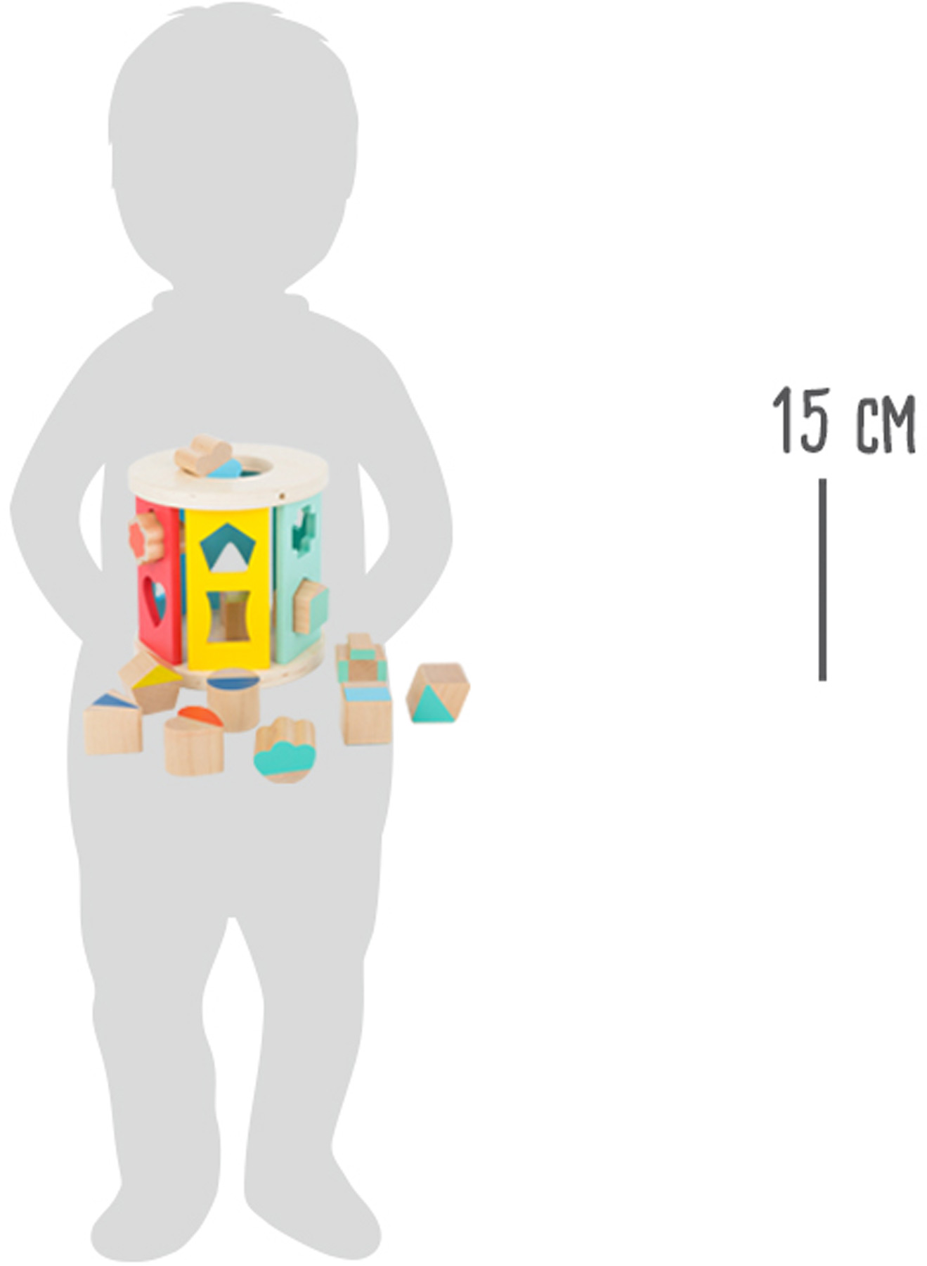 Ob als Steckspiel oder klappernde Motorikrolle, dieses massive Motorikspiel hat es in sich! Die teillackierten Steckwürfel aus Holz müssen in die passenden Formen gesteckt werden - das schult die Motorik und nebenbei ganz spielerisch das Erlernen von Formen. Wird das Steckspiel auf die Seite gelegt, gibt es beim Rollen klappernde Geräusche von sich. Durch das Gummiband an der Öffnung fällt kein Holzbaustein hinaus. Ein lustig klappernder und lehrreicher Spielspaß fürs Kinderzimmer.