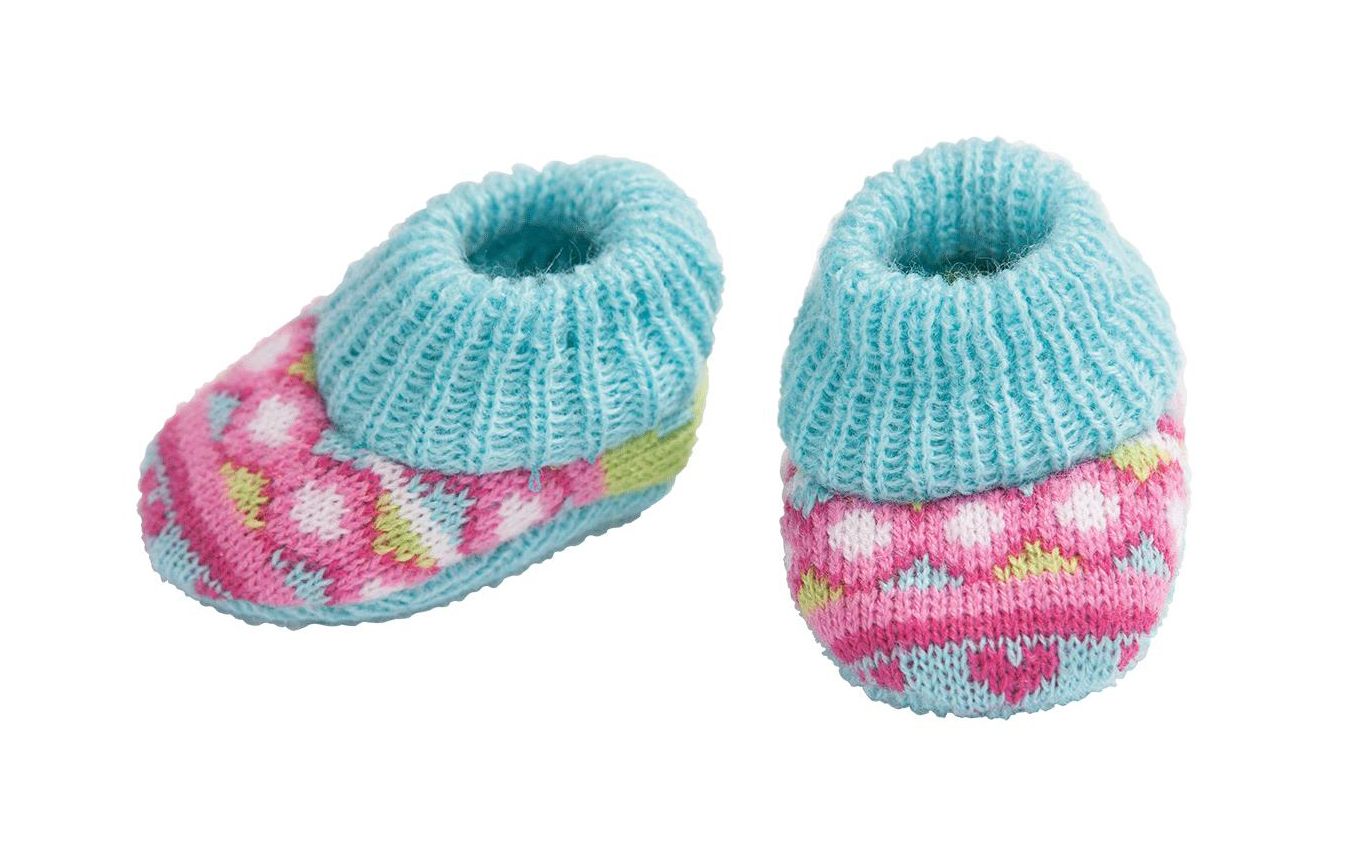 Diese niedlichen Strickschuhe von Heless halten Puppenfüßchen mollig warm. Mit ihrem farbenfroh gemusterten Design und ihrem einmaligen Tragekomfort sind die Schuhe ein Must-have für entspannte Momente zu Hause. Durch das elastische Strickmaterial passen sie sich allen Puppenfüßchen wunderbar an. Diese Schuhe passen den meisten marktgängigen Puppen der Größe 28 - 35 cm. Sie sind auch in einer weiteren Ausführung für Puppengröße 35 - 45 cm erhältlich.