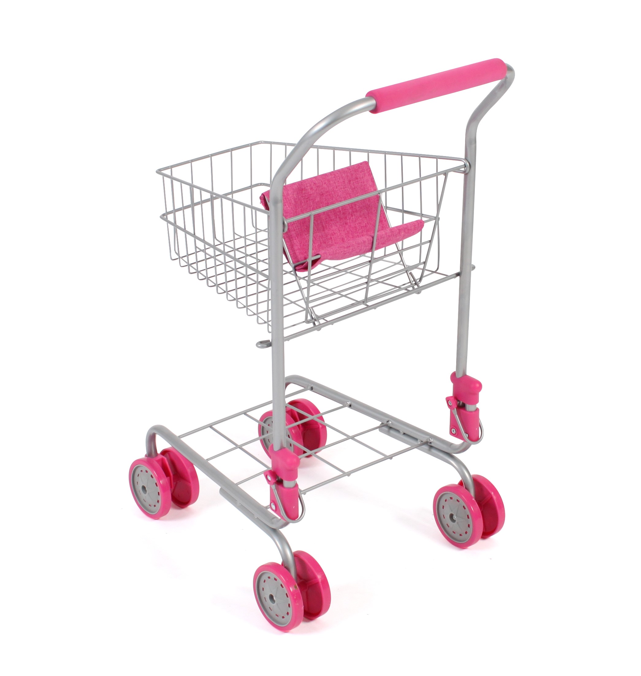 Toller Supermarkt-Einkaufswagen mit Puppensitz. Durch die schwenkbaren Vorderräder wird das Kurven kinderleicht. Super Ergänzung zum Kaufladen Ihres Kindes. In den integrierten Puppensitz passen Puppen bis ca. 46 cm. Die Schieberhöhe liegt bei ca. 58 cm; Artikelmaße: 41 x 30 x 58 cm; Gewicht: 1,3 kg