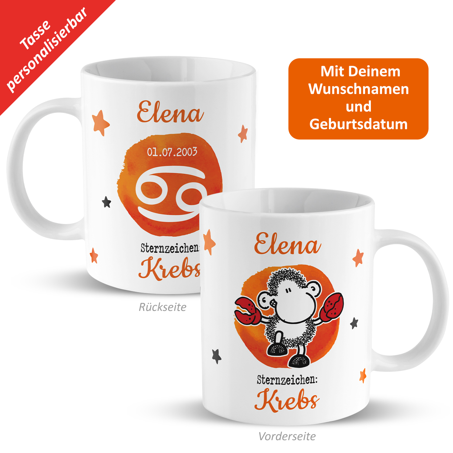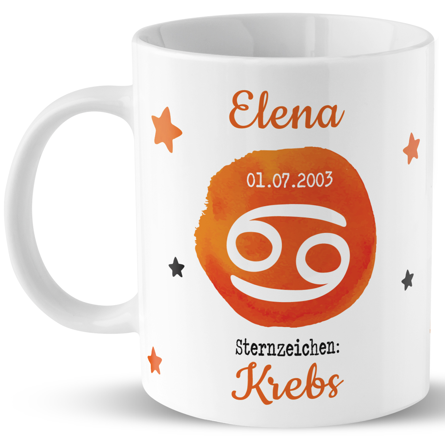 Tasse mit Sternzeichen »Krebs«, mit Namen und Geburtsdatum, weiß L18-L1416-1