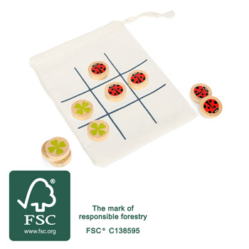 Ein rasantes Spiel für unterwegs! Dieses Tic Tac Toe - Spiel ist klein aber fein und bietet Spielspaß auf einer kompakten Spielfläche. Die Spielsteine aus FSC® 100%-zertifiziertem Holz sind mit Frühlingsmotiven bedruckt. Hier können sich Kinder auf einer langen Autofahrt die Zeit vertreiben und ganz nebenbei ihre Konzentration fördern. Wer hat als erstes drei Steine in einer Reihe?