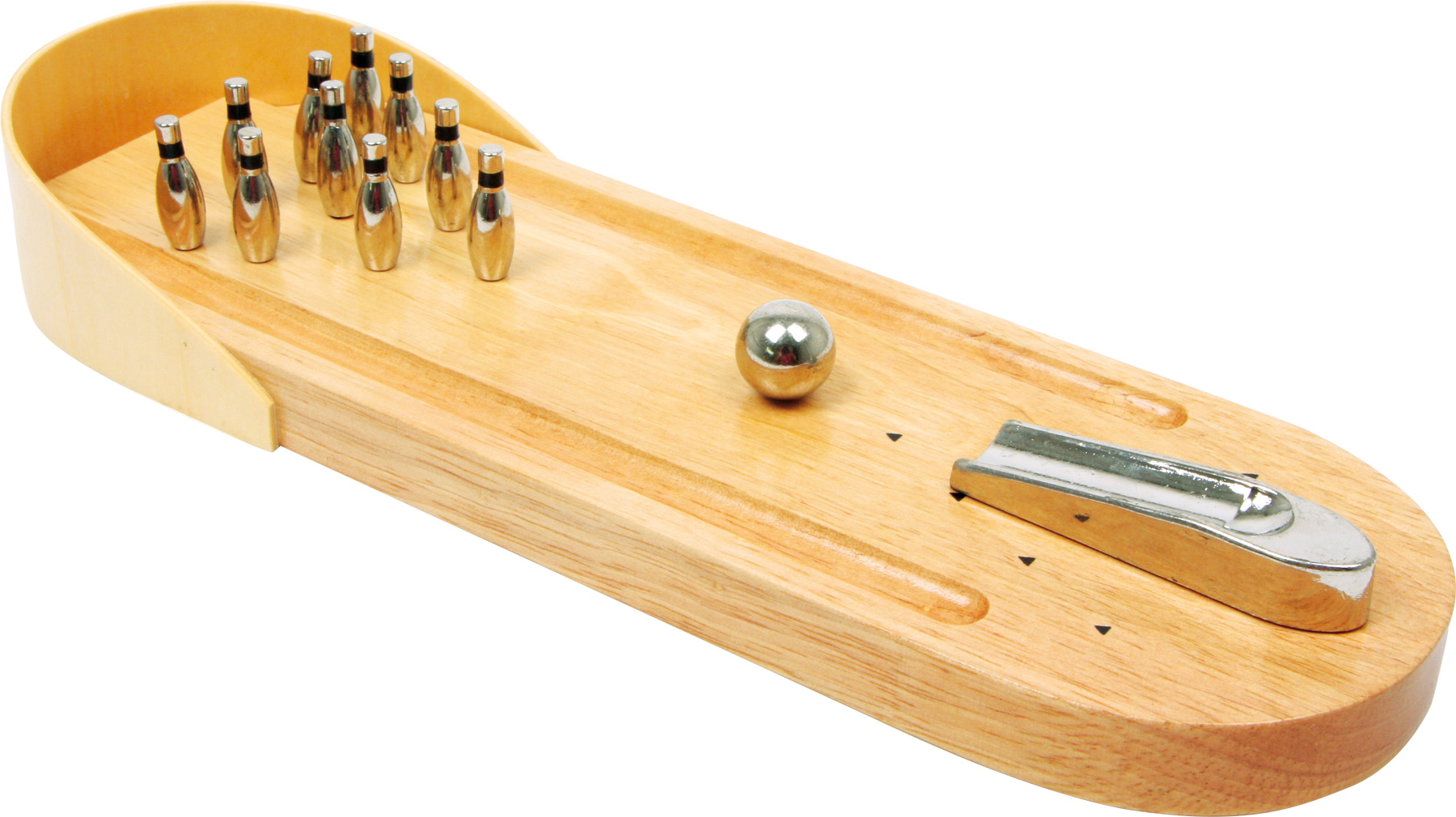 Bowling - Spielspaß für die ganze Familie. Wer sich dieses tolle Spielvergnügen auch nach Hause holen möchte, der hat mit diesem edlen Spielbrett aus Buchenholz die perfekte Wahl getroffen. Auf dem lackierten Spielbrett werden die Metallkegel aufgestellt, die Kugel in die Steckschiene gelegt und losgelassen.