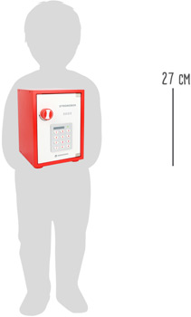 Banker und Bankräuber aufgepasst - dieser Tresor aus Holz hat es in sich! Denn wenn erst einmal die richtige Position des mechanischen Schlosses gefunden wurde und der Tresor geöffnet ist, kommen in seinem Inneren wahre Schätze zum Vorschein. Neben mehreren 5er, 10er, 50er und 100er Geldscheinen befinden sich darin nämlich auch Gold- und Silber-Münzen sowie mehrere Goldbarren aus Holz. Die Klick-Geräusche des Schlosses und die drückbaren Zahlen-Tasten lassen das Spielen mit diesem Tresor besonders realistisch wirken. Dieser Panzerschrank ist ideal für Rollenspiele geeignet und kann von den Kindern auch prima zum Verstauen weiterer persönlicher Gegenstände verwendet werden. In diesem Safe sind die Reichtümer der Kleinen sicher verwahrt!