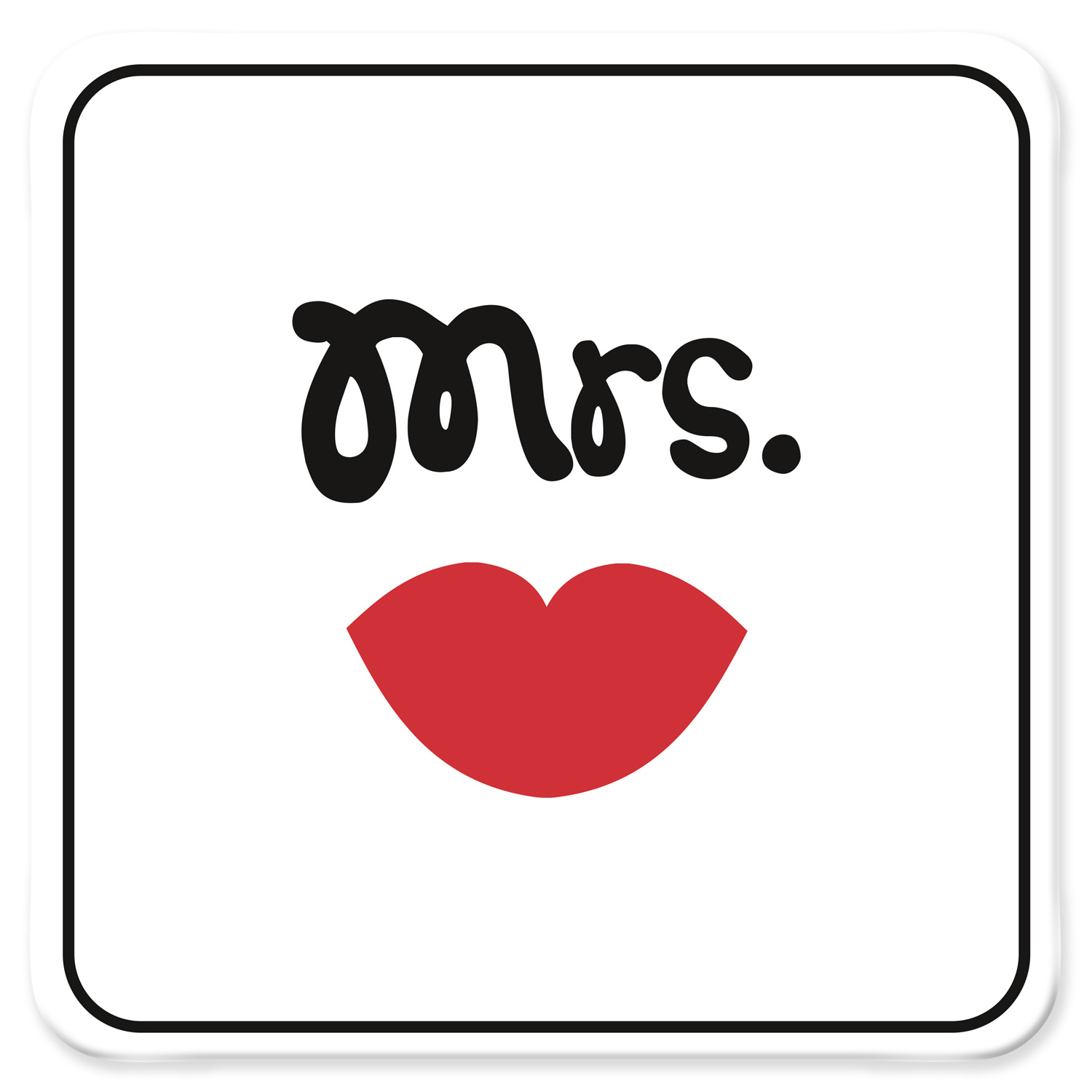 Dieser süße Untersetzer mit Kussmund und dem Schriftzug "Mrs." ist eine tolle Geschenkidee für die nächste Geburtstagsparty oder Einweihungsparty. Auch für das verliebte Hochzeitspärchen eine tolle Idee. Verschenke dazu den passenden Untersetzer mit dem Schriftzug "Mr.".