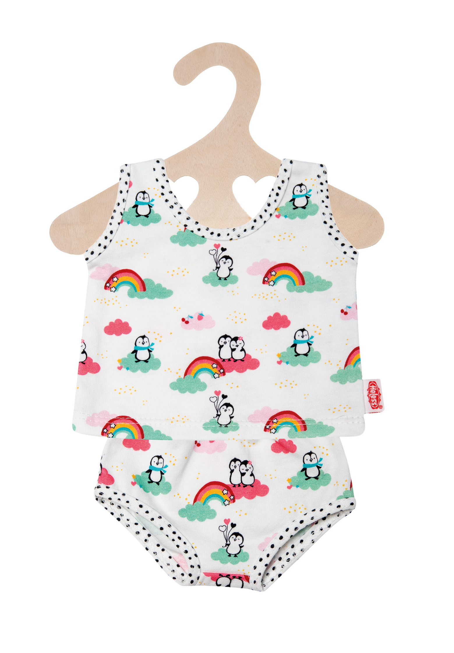 Die 2-teilige Puppen-Unterwäsche der "Pinguin Pünktchen"-Serie von Heless ist ein toller Basic-Artikel für den Puppenkleiderschrank. Das fröhliche Design sorgt für gute Laune und das weiche, elastische Jersey-Material umschmeichelt den Puppenkörper wie eine zweite Haut. Eine hervorragende Qualität und Verarbeitung sorgen dafür, dass das An- und Ausziehen der Puppe kinderleicht ist und der Spielspaß lange erhalten bleibt. Das Unterwäsche-Set passt den meisten marktgängigen Puppen der Größe 28 - 35 cm. Es ist auch in einer weiteren Ausführung für Puppengröße 35 - 45 cm (Art.-Nr. 2120) erhältlich.
