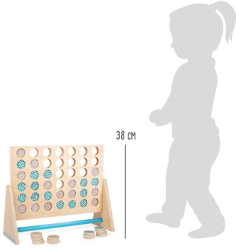 Strategen gefragt! Dieses klassische „Vier in einer Reihe“ aus FSC® 100%-zertifiziertem Holz liefert im XXL-Format Spielspaß für Groß und Klein. Logik und Konzentration sind gefragt, um vier gleichfarbige Spielsteine in einer Reihe zu platzieren. Die großformatigen Spielsteine sind leicht zu greifen und bieten allen Spielern einen guten Überblick. Auch bestens für Draußen geeignet! Wer holt mit den farbenfrohen Spielsteinen und cleveren Kombinationen am Ende den Sieg nach Hause?