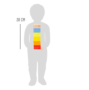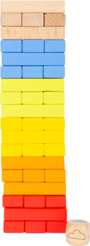 Angesagte Regenbogenfarben machen dieses Wackelturm-Spiel zu etwas Besonderem! Konzentration und Fingerspitzengefühl sind gefragt, wenn die bunten Bausteine reihum aus dem Turm gezogen und oben wieder aufgelegt werden, ohne dass der Turm einstürzt. Der Würfel mit bunten Wolken zeigt an, welcher Stein als nächstes gezogen werden muss. Auch als Holzbausteine zum Bau von kunterbunten Türmchen ein Hit! Kult-Geschicklichkeitsspiel in Trendfarben. Wer beweist eine ruhige Hand? Dieses Geschicklichkeitsspiel ist ein riesiger Spaß für Groß und Klein und schult ganz nebenbei Geduld und Feinmotorik. Nervenkitzel inklusive.