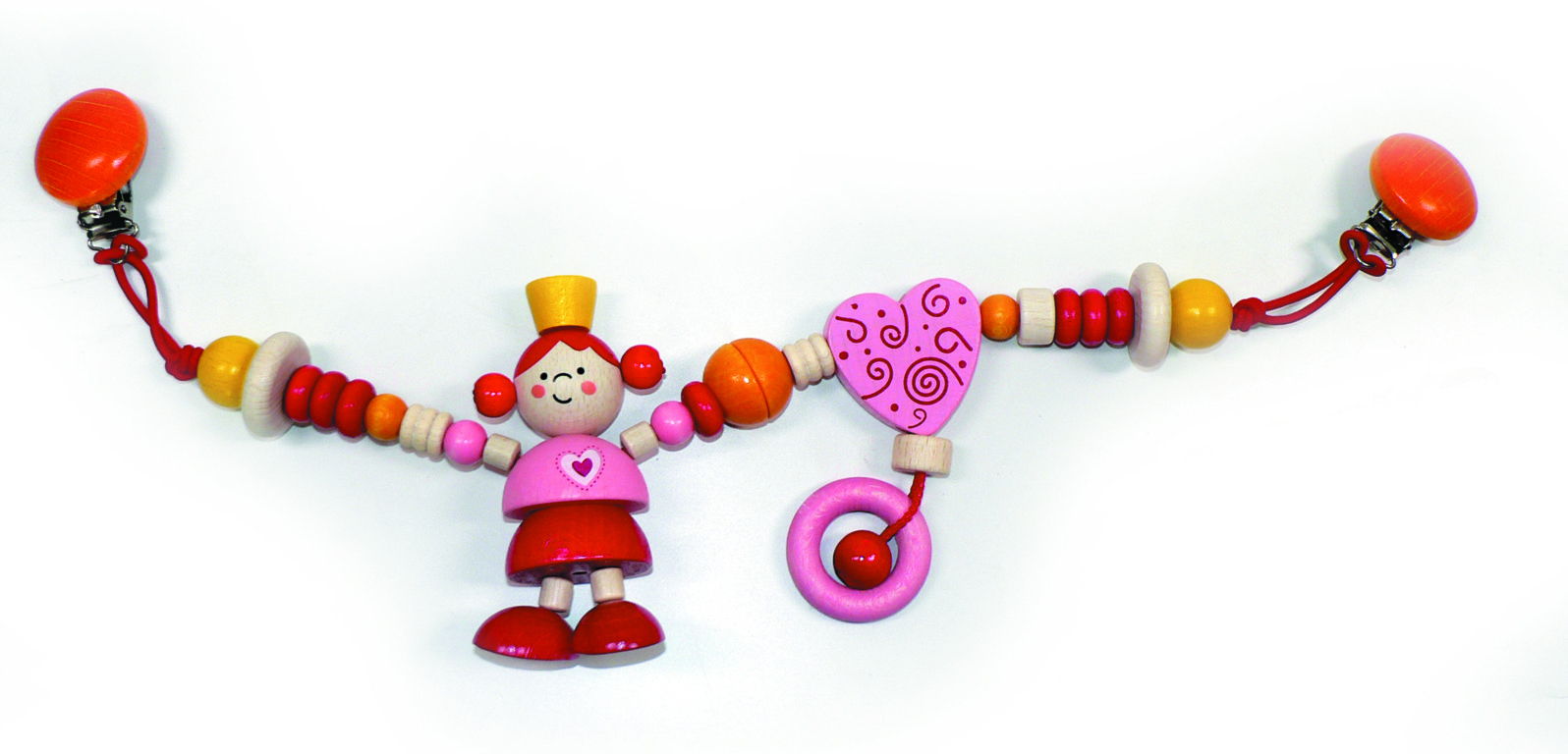 Achtung! Bitte achten Sie darauf, dass der Anhänger stets am Kleidungsstück oder Kinderwagen befestigt ist. Kontrollieren Sie regelmäßig das Spielzeug und entfernen Sie es sofort bei Mängeln oder Beschädigungen. Verlängern Sie niemals das Spielzeug und befestigen Sie den Anhänger niemals an Schnüren, Bändern, Trägern oder losen Teilen der Kleidung. Ihr Kind kann sich damit erdrosseln. Benutzung nur unter unmittelbarer Aufsicht von Erwachsenen.