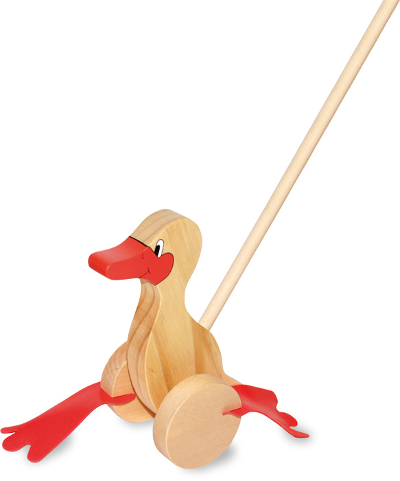 Diese niedliche Watschelente aus Holz begleitet Laufanfänger bei ihren ersten Schritten und macht ihnen vor, wie trittsicher ein kleines Entchen sein kann. Dabei bewegen sich die patschigen Gummifüße an den Rollen mit und sorgen für jede Menge Spaß beim Laufen.