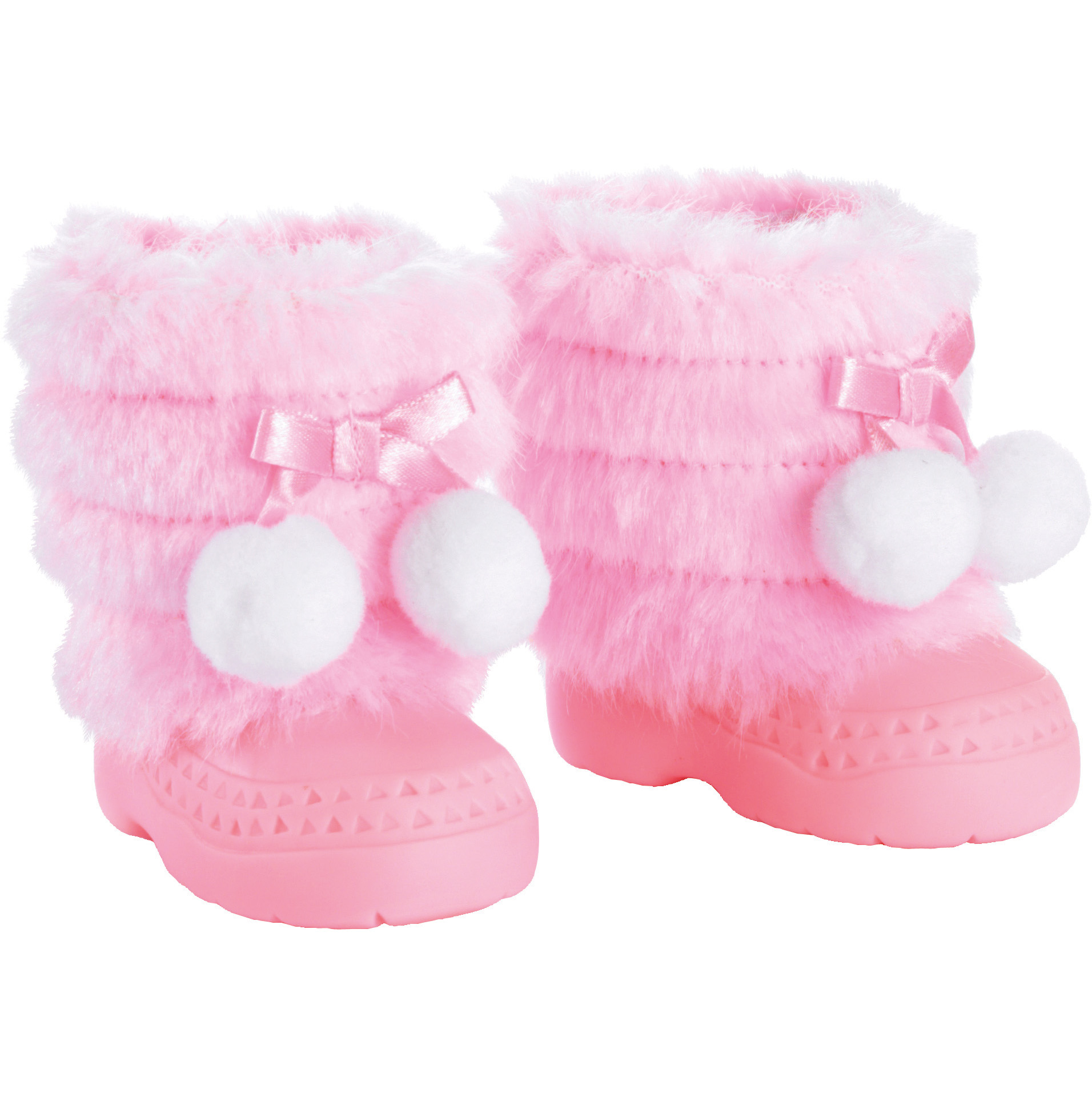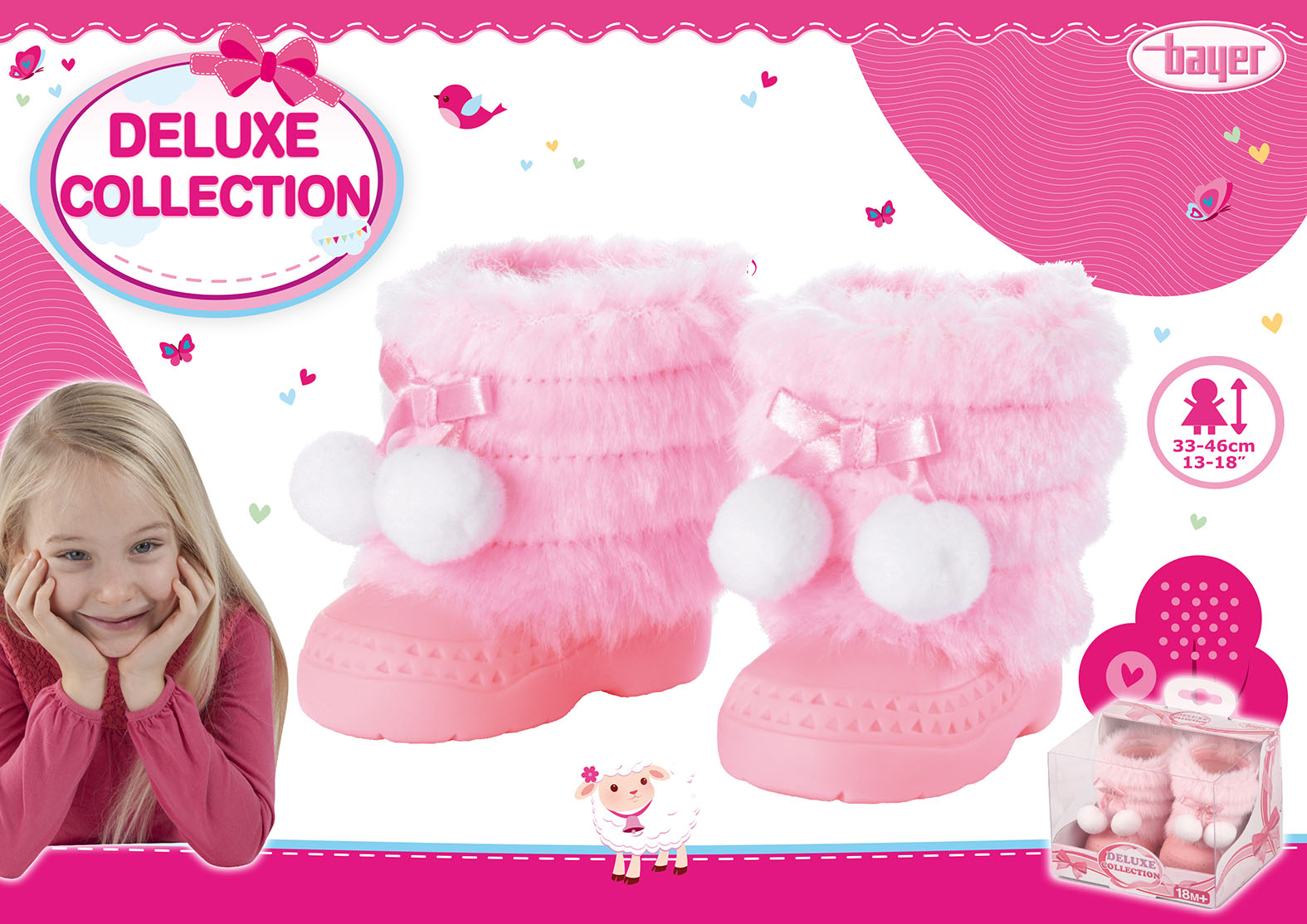 Mit diesen Winterstiefeln bekommt ab sofort keine Puppe kalte Füße mehr. Die rosafarbenen Boots sind mit süßen Bommeln, Schleifchen und kuscheligem Pelz verziert. Somit sind die Stiefel genau das Richtige an kalten Tagen. Passend für Puppen ca. 42 cm. Lieferung erfolgt in hübscher Geschenkverpackung.