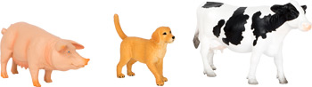 Artikelinhalt: 1 Bauernhof, 1 Bauer, 1 Kuh, 1 Hund, 1 Schwein, 3 Heu, 1 Leiter, 1 Trog, 3 Zaun