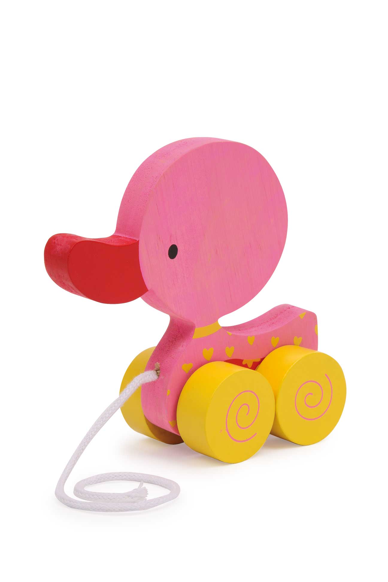 Niedliche Enten aus aus FSC® 100%-zertifiziertem Holz und in schönen Farben lasiert, zockeln lustig hinter den Kindern her! Farbliche Details verstärken ihr fröhlich süßes Aussehen.