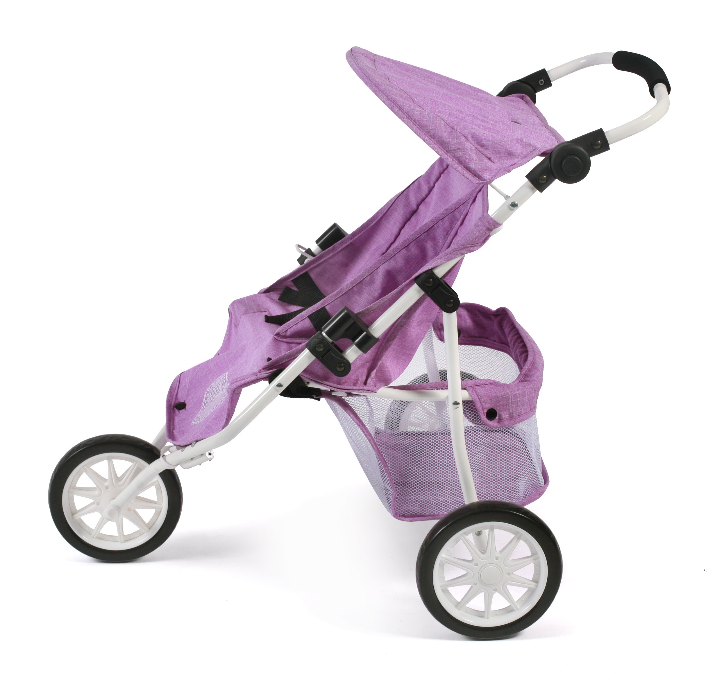 Moderner 3-Rad-Jogging-Buggy für Puppen mit höhenverstellbarem Schiebegriff von 50 bis 75 cm. Der niedliche Zwillings-Jogger hat ein umklappbares Sonnenverdeck, Sicherheitsgurte und ein großes Gepäcknetz. Fördert die Kreativität Ihres Kindes. Für Puppen bis 50 cm geeignet. Artikelmaße: 67 x 51,5 x 71 cm, Gewicht: 2,8 kg. Geeignet für Kinder ab 3 Jahren.